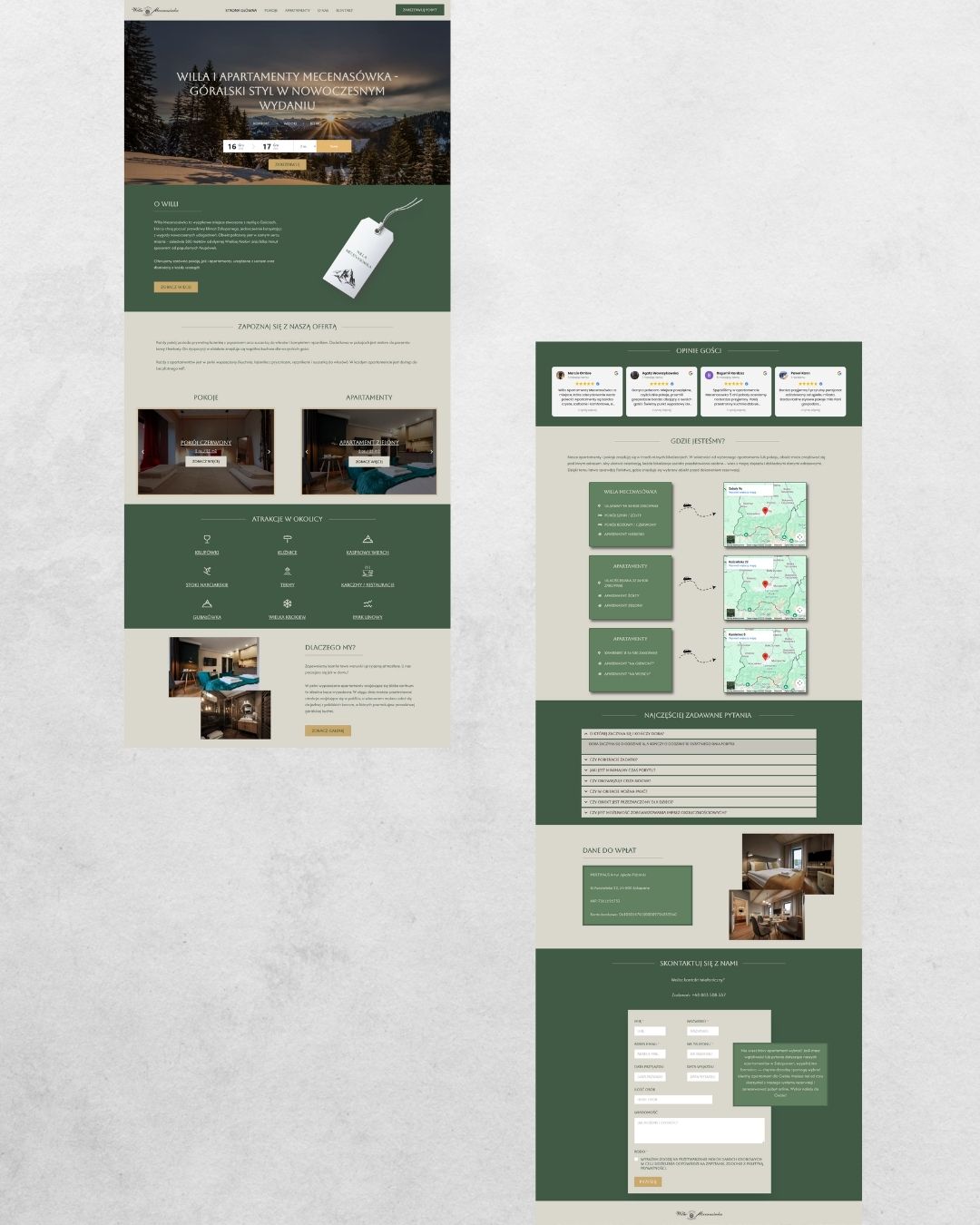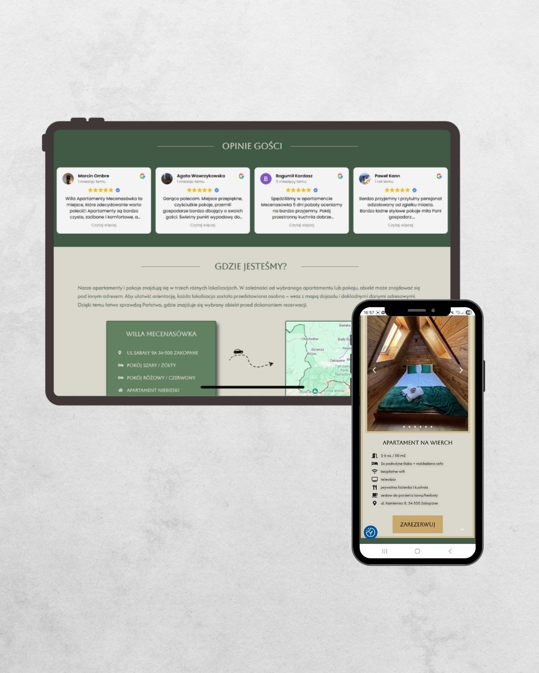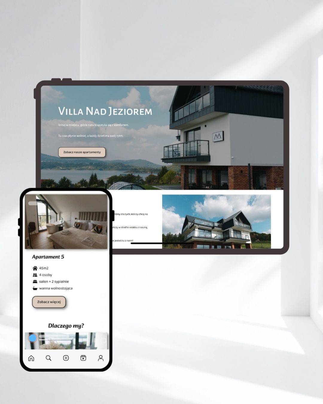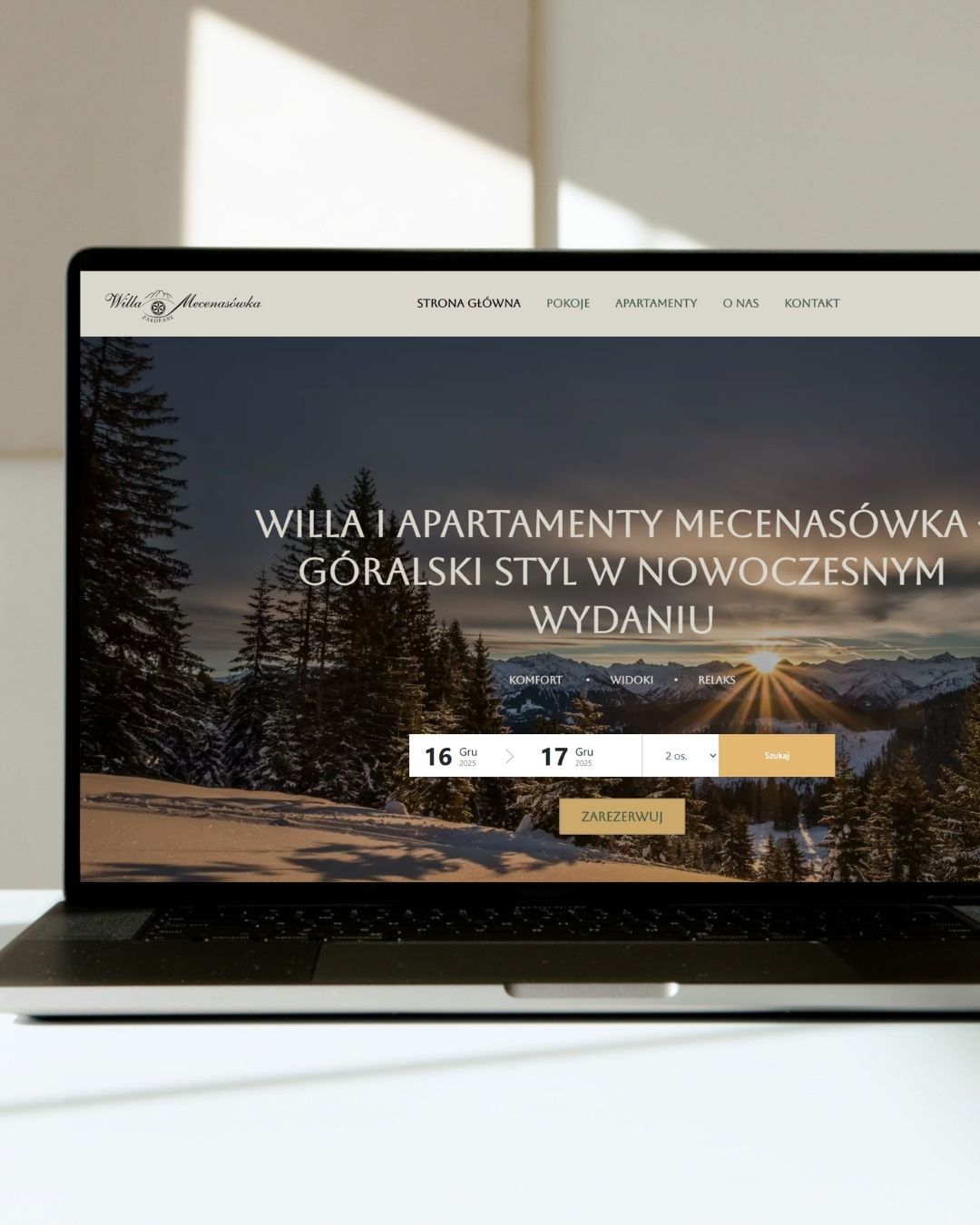 Strona internetowa nowego obiektu noclegowego z elegancką prezentacją oferty oraz zintegrowanym panelem rezerwacji. Projekt w pełni responsywny i dopasowany do urządzeń mobilnych.