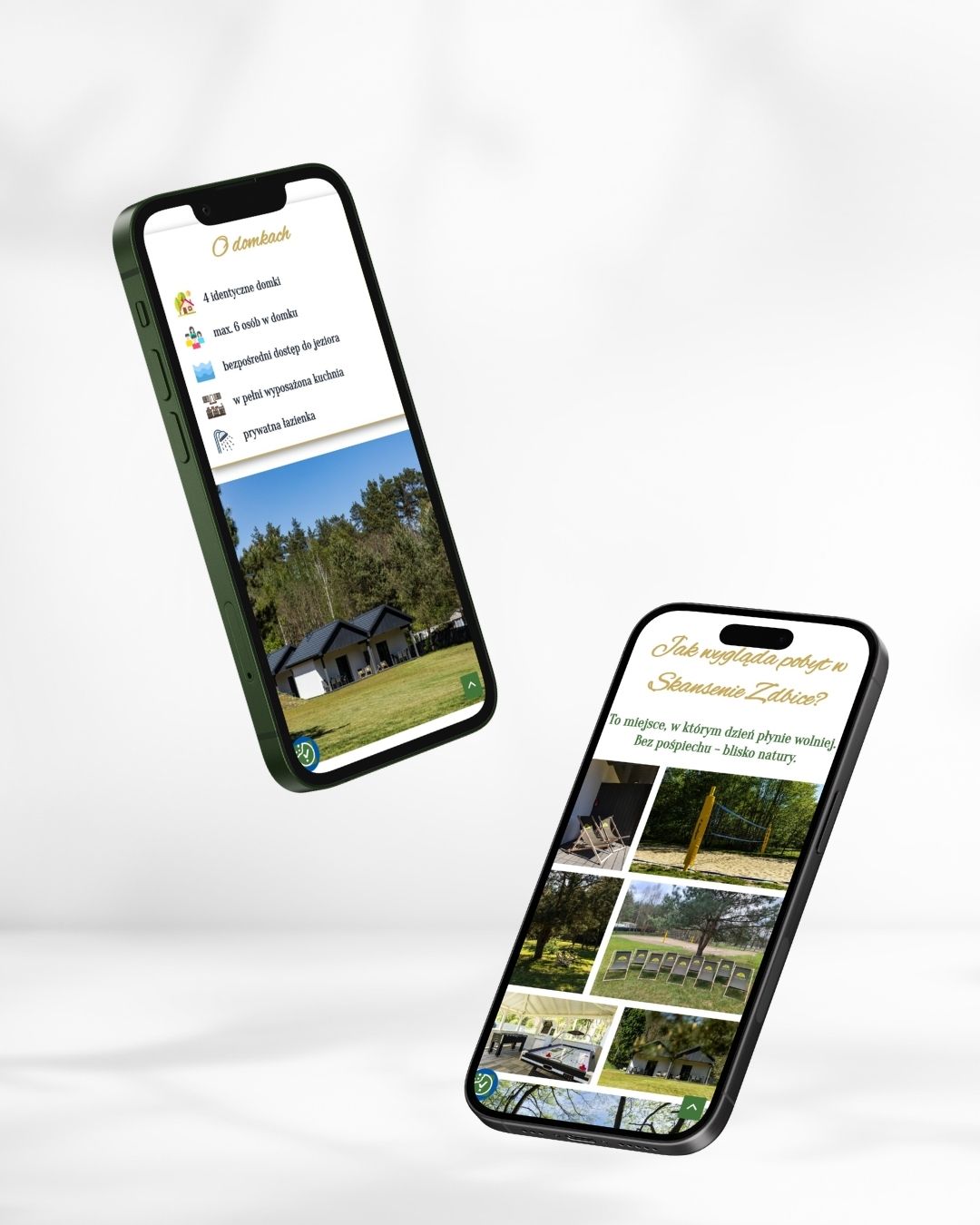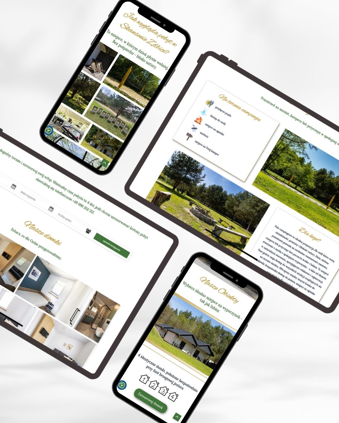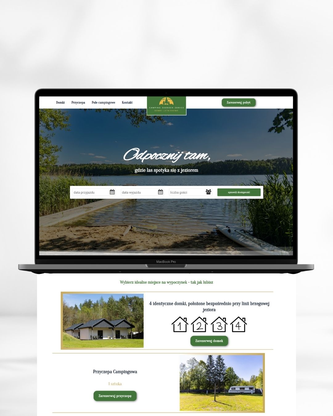 Nowoczesna strona internetowa dla kompleksu domków letniskowych z wbudowanym panelem rezerwacji. Projekt skupiony na prostocie, intuicyjnej nawigacji i szybkim procesie rezerwacji.