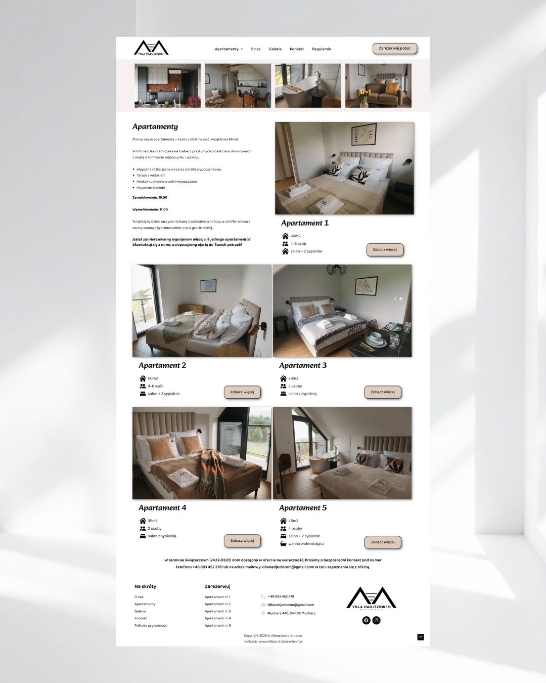 Przebudowa istniejącej strony na nowoczesny, estetyczny projekt z czytelną prezentacją apartamentów. Strona została uproszczona i dostosowana do aktualnych standardów UX.